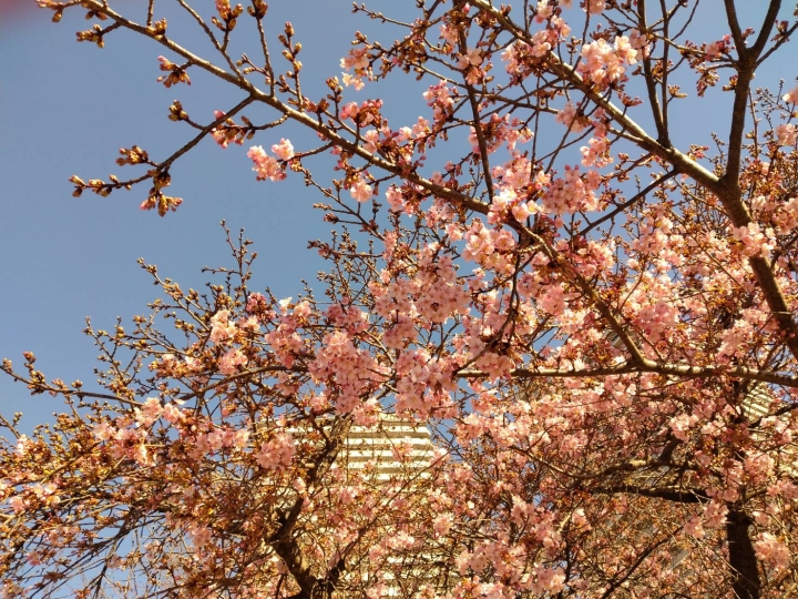 つい先日、神奈川出張の際、駅から歩いて間もない高層マンション群の公園に植えられている河津桜がちらほらと花を咲かせていました。